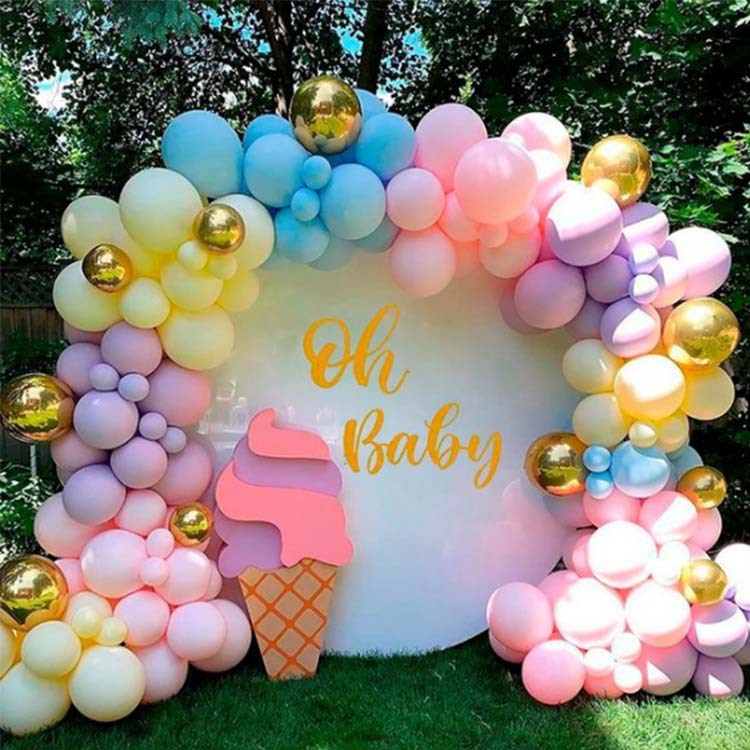 El juego de arco de globos es el producto decorativo más importante en el proyecto de decoración de eventos. Los principales escenarios donde se utiliza incluyen celebraciones de bodas, celebraciones de festivales, celebraciones de cumpleaños, graduaciones, eventos de empresa, etc. Hace que el evento sea más colorido y agradable.