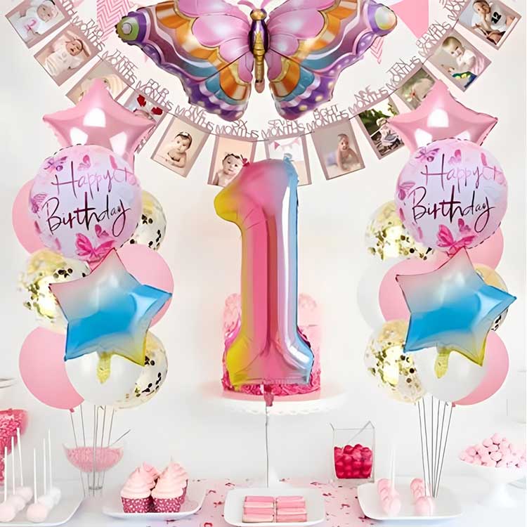 El globo de aluminio con forma de mariposa está hecho de material de aluminio metálico. Este material no sólo le da al globo un brillo y una textura únicos, sino que también mejora en gran medida la durabilidad y la resistencia a la presión del globo. Las propiedades reflectantes del papel de aluminio hacen que los globos deslumbren especialmente bajo la luz, aumentando el impacto visual.