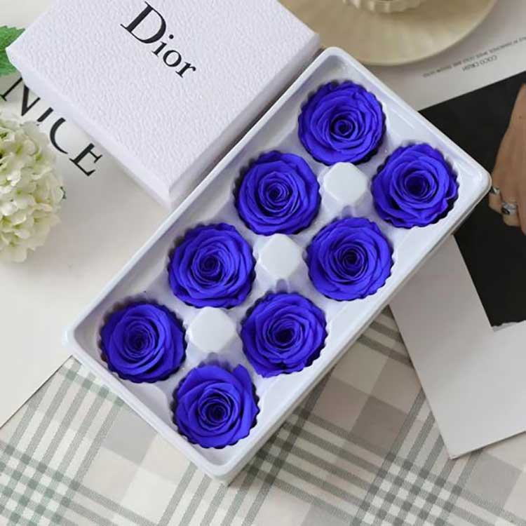 Las rosas se clasifican en tres niveles: A, B y C. Las rosas de grado A son más grandes y llenas. Nuestra caja de regalo de rosas Everlasting Flower de 8 flores está hecha con rosas de grado A. Las dimensiones de la caja de regalo son 24 cm * 13 cm * 8 cm. Cada caja pesa aproximadamente 150 g. Vida útil de las flores preservadas: 3-5 años en condiciones normales de almacenamiento, lo que resulta más beneficioso para sus ventas.