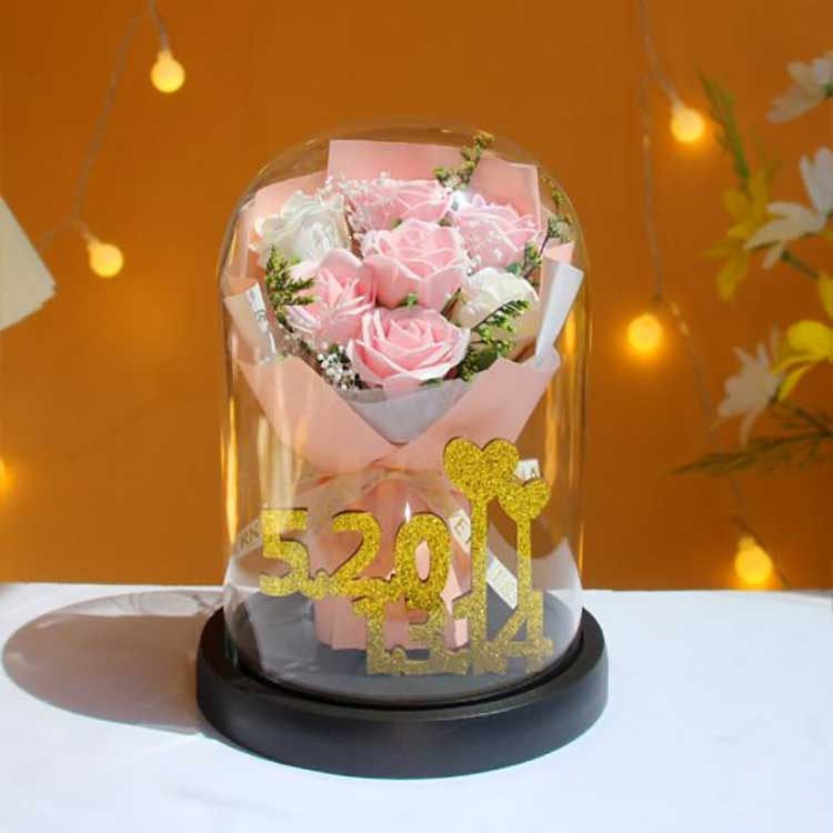 Nuestro jabón de rosas cubierto de vidrio conserva sus colores vibrantes y su aspecto natural, mientras que las cubiertas de vidrio transparente les añaden una sensación romántica y lujosa. Ofrecemos una variedad de opciones de personalización: utilizando tecnología de grabado láser e impresión UV, se graban logotipos de marcas, mensajes personalizados o patrones temáticos en el vidrio. El color es duradero, los detalles son claros y no se desvanece, lo que lo convierte en una opción ideal para promociones publicitarias, obsequios navideños, obsequios de boda o recuerdos corporativos.