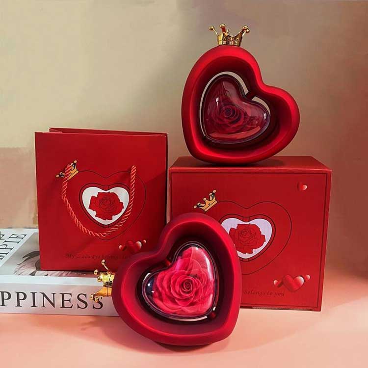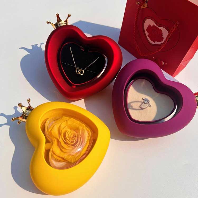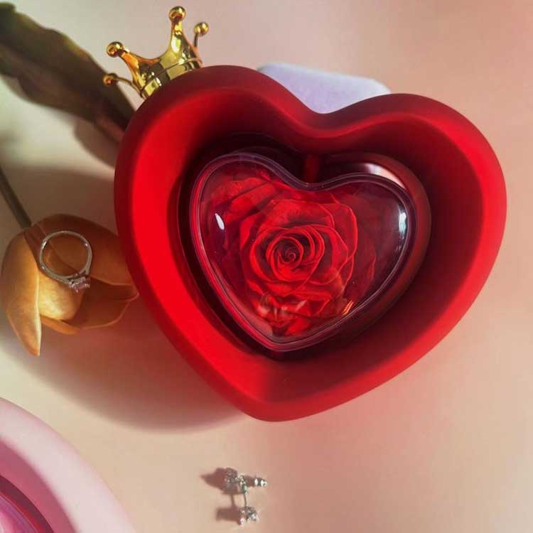 El joyero con forma de rosa en forma de corazón utiliza flores preservadas de grado A, cuyo color y textura son indistinguibles de las flores frescas.