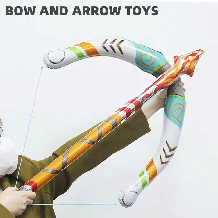 Kit de guirnalda de globos azul noche y azul hieloEl juego de juguetes inflables con arco y flecha está hecho de PVC, capaz de soportar el juego entusiasta de los niños. Se infla rápidamente y conserva su forma durante mucho tiempo. Incluye tres espadas para facilitar el intercambio.