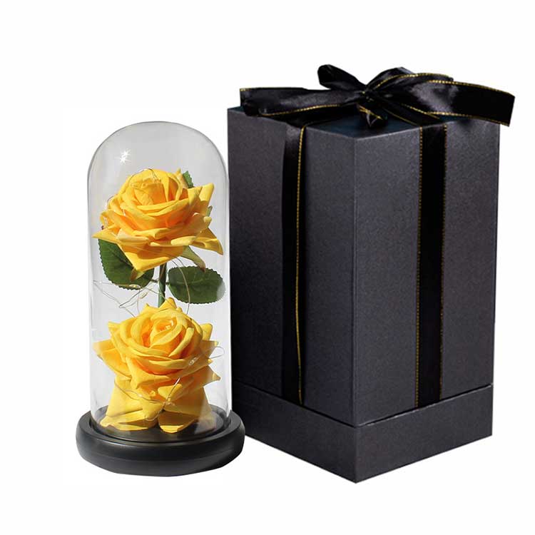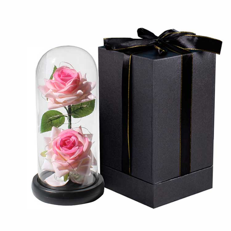 Ofrecemos pétalos de PVC y terciopelo, y el interior se puede personalizar con varias figuritas pequeñas para realzar el atractivo del producto. A diferencia de las flores frescas que requieren riego y poda, esta no requiere mantenimiento. Simplemente limpie la cúpula de vidrio de vez en cuando con un paño suave para mantenerla limpia y nueva, perfectamente adaptada al acelerado estilo de vida actual.