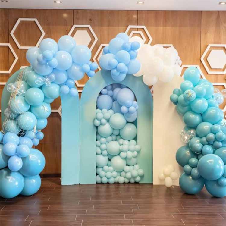 3.Globos de efectos especiales: globos de color azul nacarado (que simulan los reflejos del océano) y globos de lentejuelas (con lentejuelas plateadas o azules incorporadas para simular la luz de las estrellas bajo el agua)