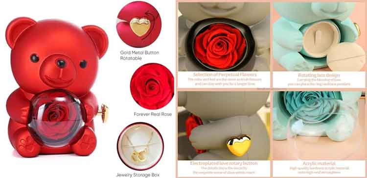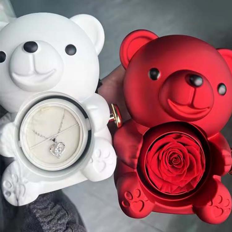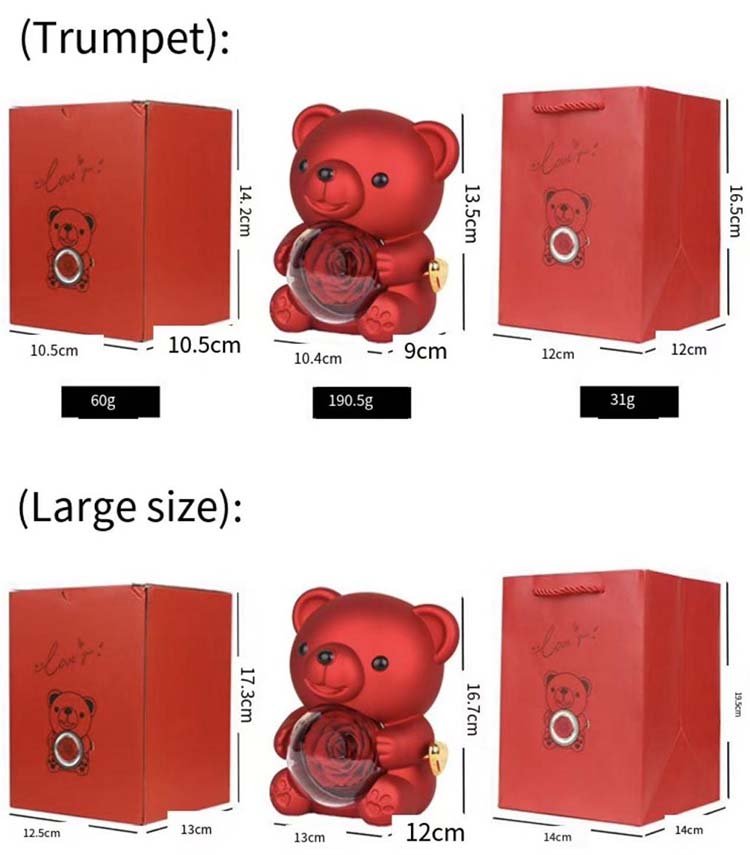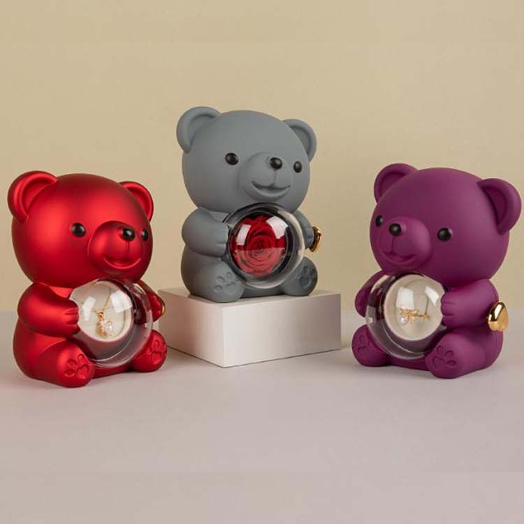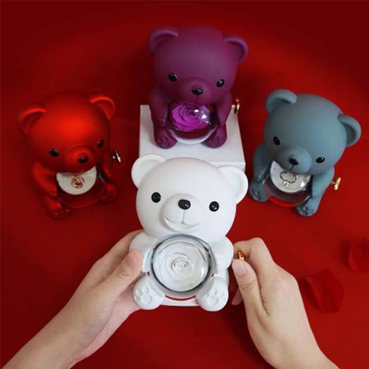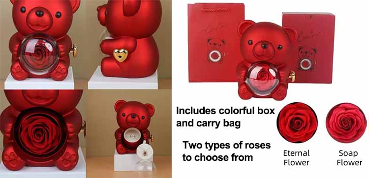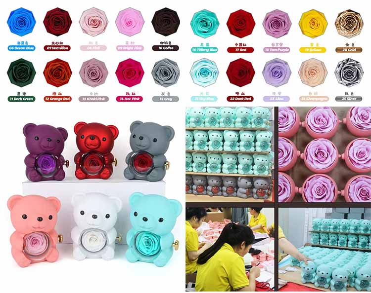 Durante el proceso de producción, se implementa un riguroso control de calidad y cada osito de abrazo sorpresa con flores preservadas se somete a múltiples inspecciones de calidad. Después de la producción, inspectores de calidad dedicados realizan una inspección exhaustiva de la apariencia general, la integridad del diseño y el acabado detallado del oso.