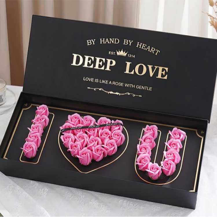 Nuestra caja de flores con cabezas de rosas de jabón está empaquetada individualmente para evitar que se apriete y se dañe durante el transporte. Las cajas están hechas de cartón corrugado grueso, un material resistente y duradero con excelente resistencia a la presión y a las caídas, lo que garantiza que cada caja de regalo llegue en perfectas condiciones.